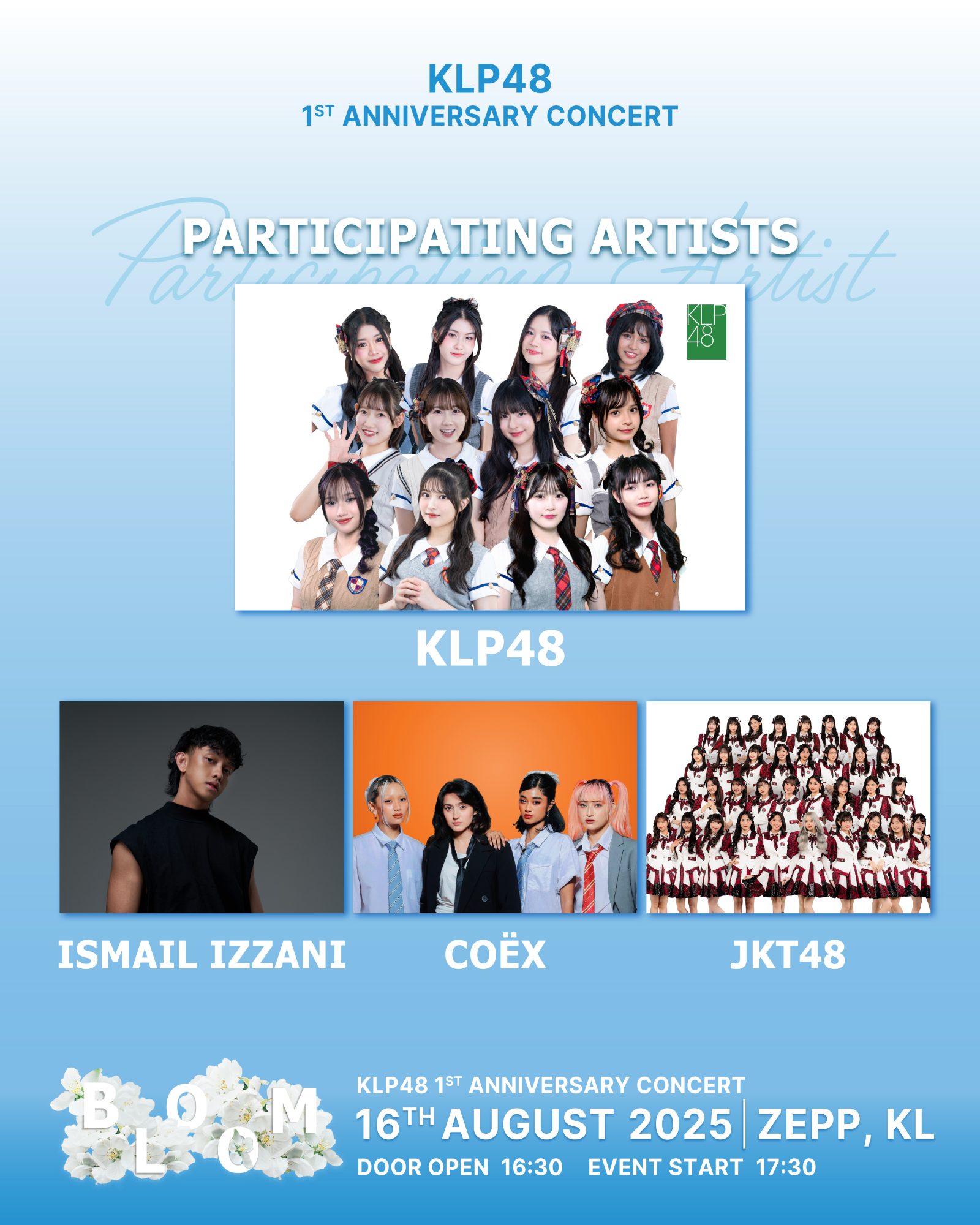 由48 Entertainment主办的演唱会《〜BLOOM〜》将于 8 月 16 日(星期六)下午 5点 30 分在吉隆坡 Zepp 精彩开唱。这场周年庆典将展现 KLP48 的活力表演、舞蹈及跨文化互动演出。成立于 2024 年的 KLP48 是 AKB48 家族在马来西亚组建首个分队,拥有 13 位成员(7 名大马籍、4 名日本籍,印尼及香港各 1 名)。其中 3 位来自 AKB48、以及 1 位来自 STU48 的转移的成员,为组合带来丰富的国际演出经验。