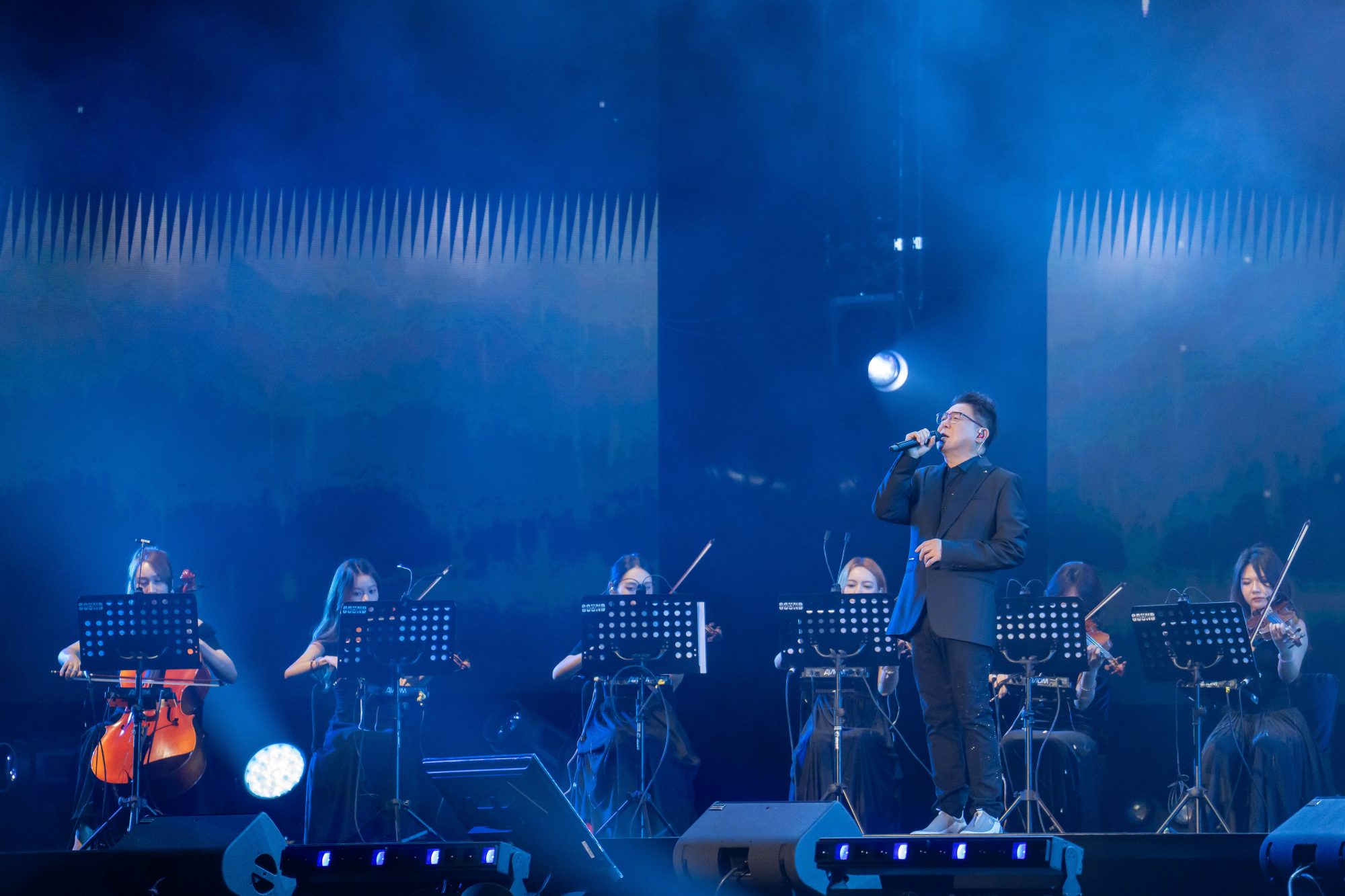 最搞笑的是,在演唱会进行到下半场后,他留意到了歌迷没有开手机闪光灯,忍不住喊大家把手机掏出来,大家当下立刻开闪光灯那一刻,他多次直呼好漂亮,之后还跟歌迷大合照留纪念。
