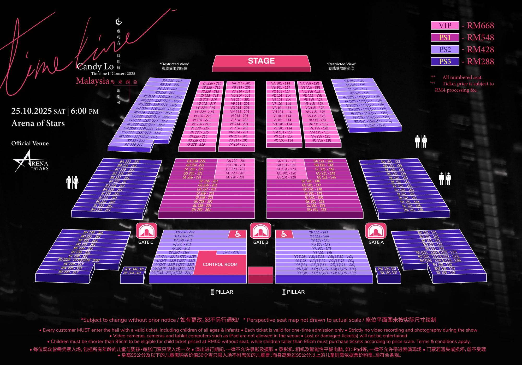 盧巧音《時間綫 II 演唱會2025 – 馬來西亞站》门票将于 2025 年 8 月 8 日下午 3 时开放给云顶云尊金卡及以上的会员透过云顶世界官方网优先购买,公众售票则于 2025 年 8 月 13 日中午 12 时开售。票价格分为 668 令吉(VIP)、548 令吉(PS1)、428 令吉(PS2)及 288 令吉(PS3),所有票价未包含 RM4 手续费。