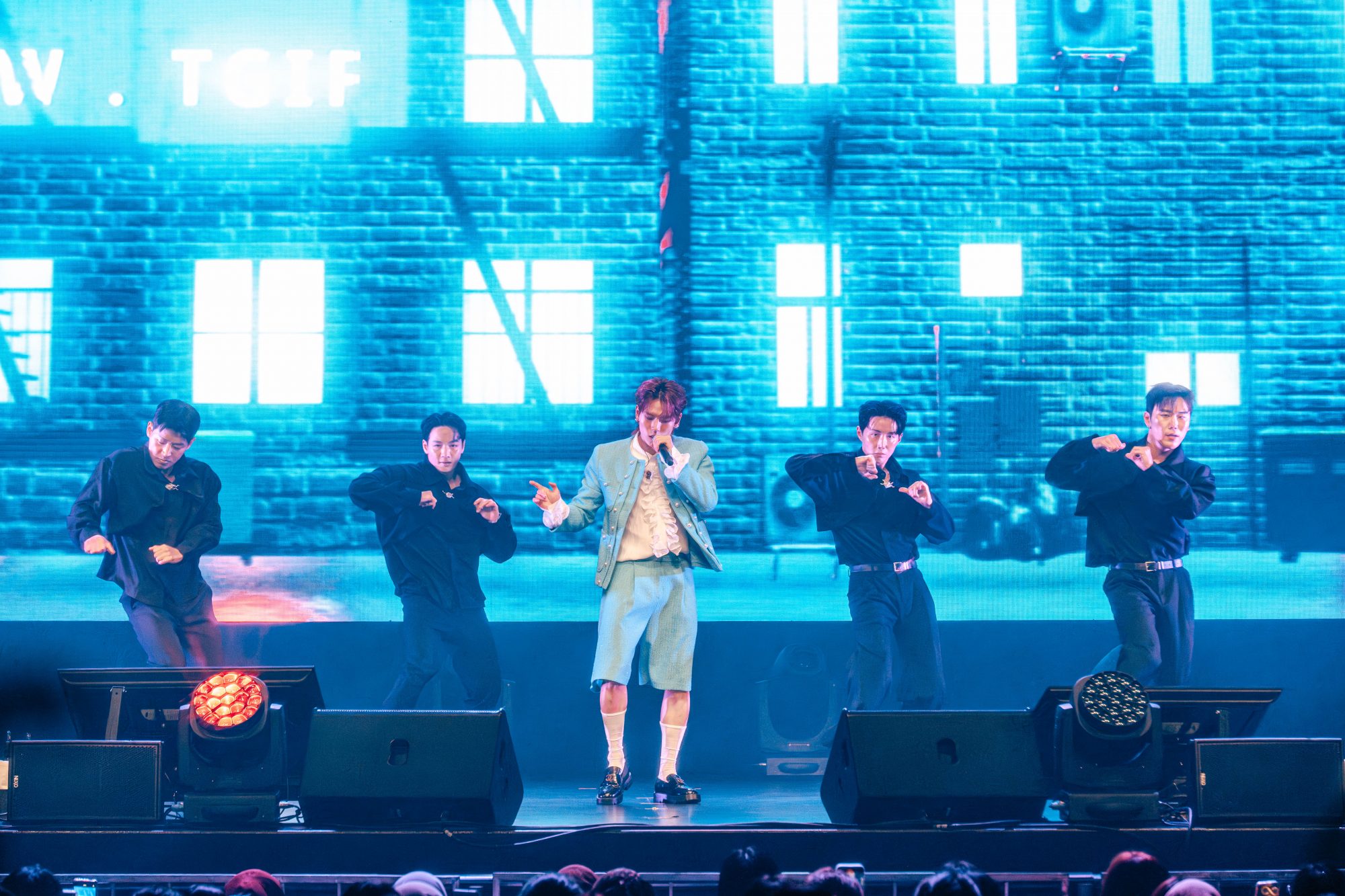 张东雨当晚以轻快歌曲《TGIF》、《Romeo》唱跳为演出掀开序幕,瞬间点燃全场热情,期间在大荧幕分享了许多自己私下日常行程的照片,一些毫无偶包行为让歌迷们多次捧腹大笑。他超融入大马文化,穿着一对拖鞋上街,后来遇上下雨,他竟然用塑料袋保护最重要的发型。