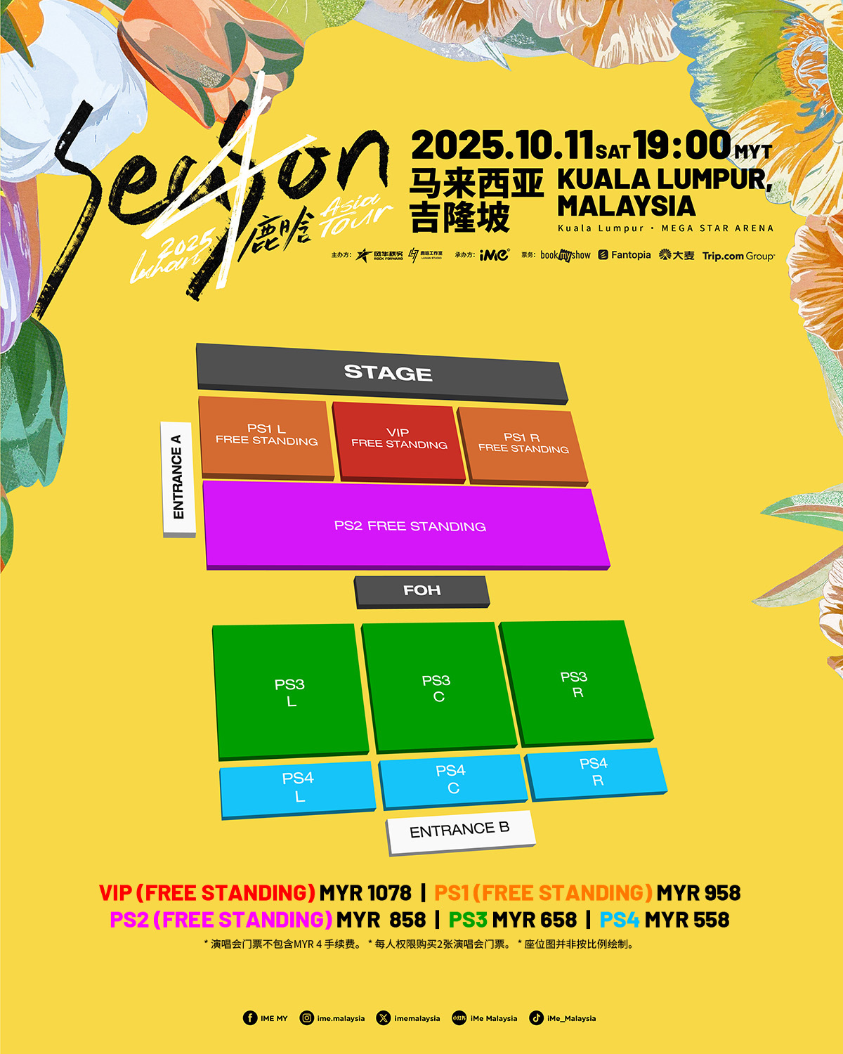 被中国歌迷及网友送以“颜霸”之称的现象级顶级偶像鹿晗终于开启首次海外个人巡演——2025鹿晗Season 4 亚洲巡演(2025 LUHAN SEASON4 ASIA TOUR)!主办单位 iMeMY官宣大马站将在9月4日中午12点开票。