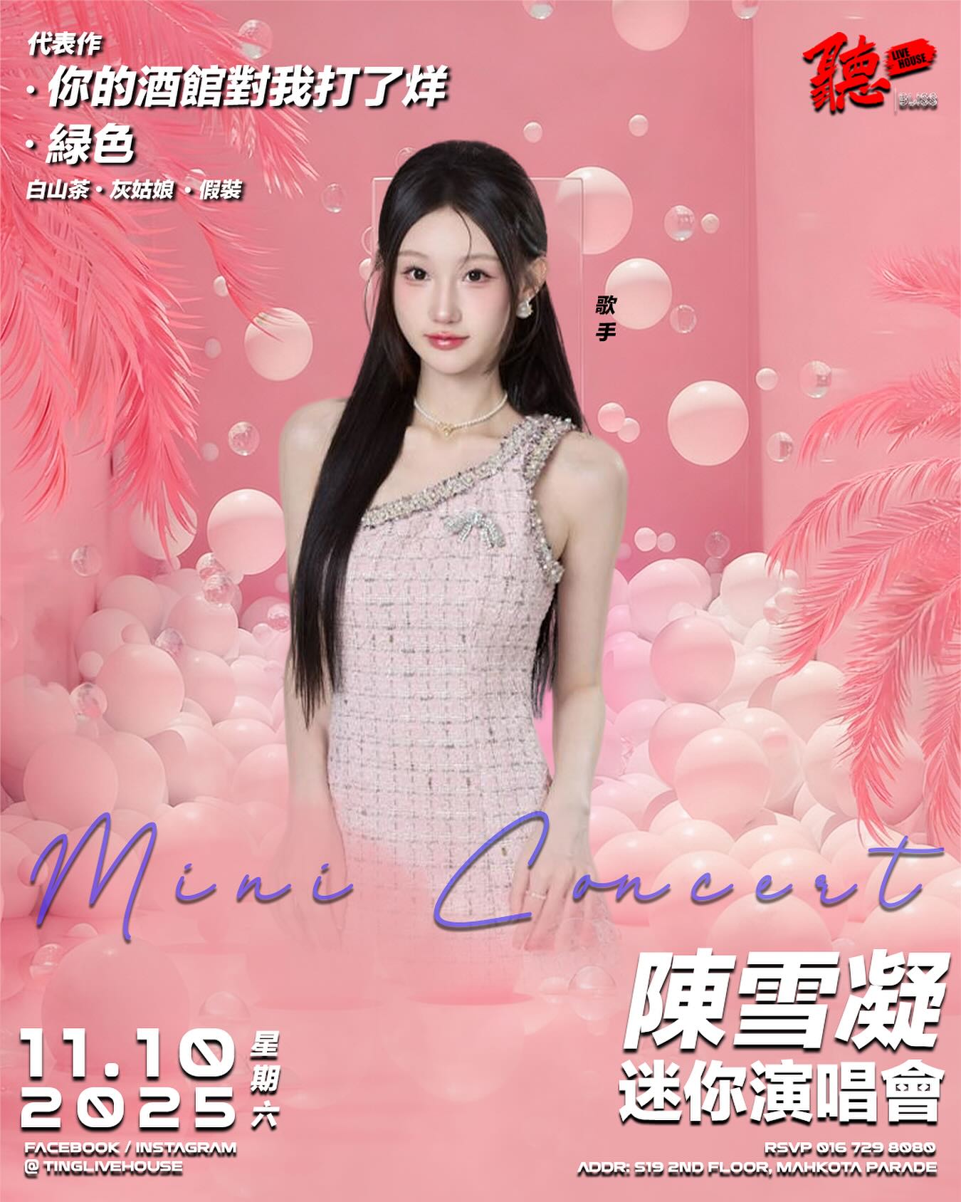 中国新生代唱作歌手陈雪凝将于10月8日(吉隆坡) 和 10月11日(马六甲),在马来西亚举办她出道以来首次个人迷你演唱会。她将在这次演出中与大马粉丝零距离接触、合唱抖音破亿金曲,共度一个最动人的音乐夜晚。
