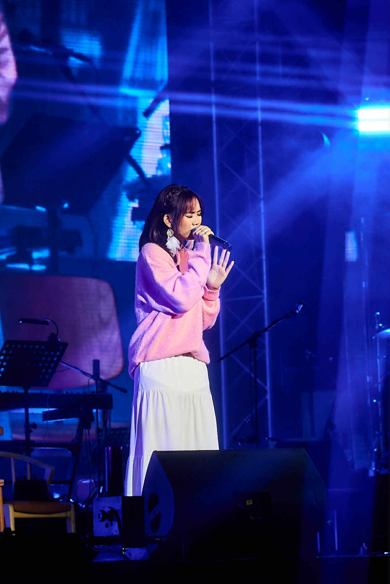 演唱会正式开始前,唱爆舞台的总冠军得主刘恩珺(Jun Jun)率先登台打头阵,献唱新单曲《沙与海的距离》。