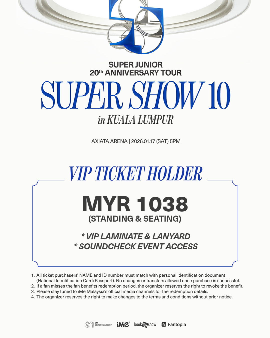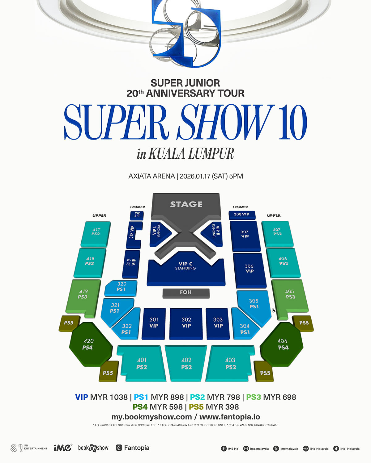 由 iMe Malaysia 主办的《SUPER JUNIOR 20th Anniversary TOUR in KUALA LUMPUR》将于 2026 年 1 月 17 日(星期六)下午 5 点 在 Axiata Arena 盛大举行!
