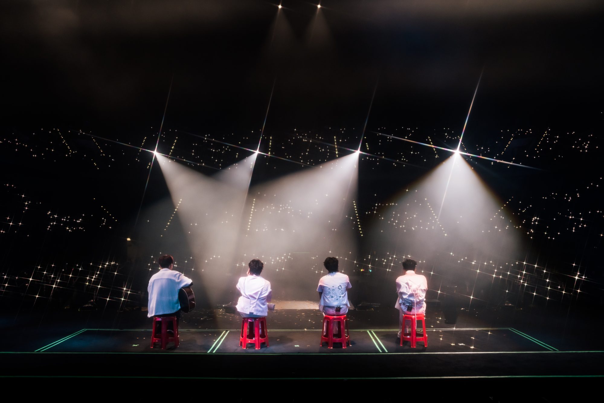 当晚另一个亮点则是好友菲道尔和Priscilla Abby蔡恩雨担任“嘉宾”出现在大屏幕的方式隔空合唱,可能让许多粉丝“黑人问号”,他们唱完后就用脱口秀方式打趣说:“不是他们的问题,我们没有budget!”下秒演唱会音乐总监兼歌手Hanz郭文瀚出现在舞台为三人弹吉他伴奏,他们亦用心准备了超道地Classic的塑料红椅子作为fashion亮点。