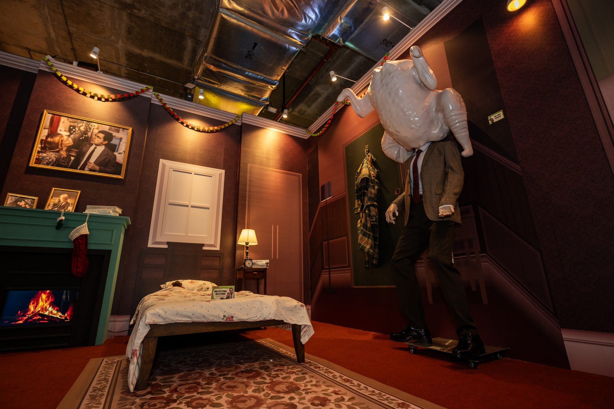 在互动式拍照区,重现多个 Mr Bean 的经典名场面。不论是模仿他笨拙可爱的姿势,还是与那辆标志性的绿色小车合影,都是粉丝必拍的打卡点。连 Mr Bean 的圣诞房间也完美还原,包括他头上那只火鸡都出现了!每个角落都藏着惊喜,比如房间的老鼠洞里还悄悄放着一份“送给老鼠的小礼物”。