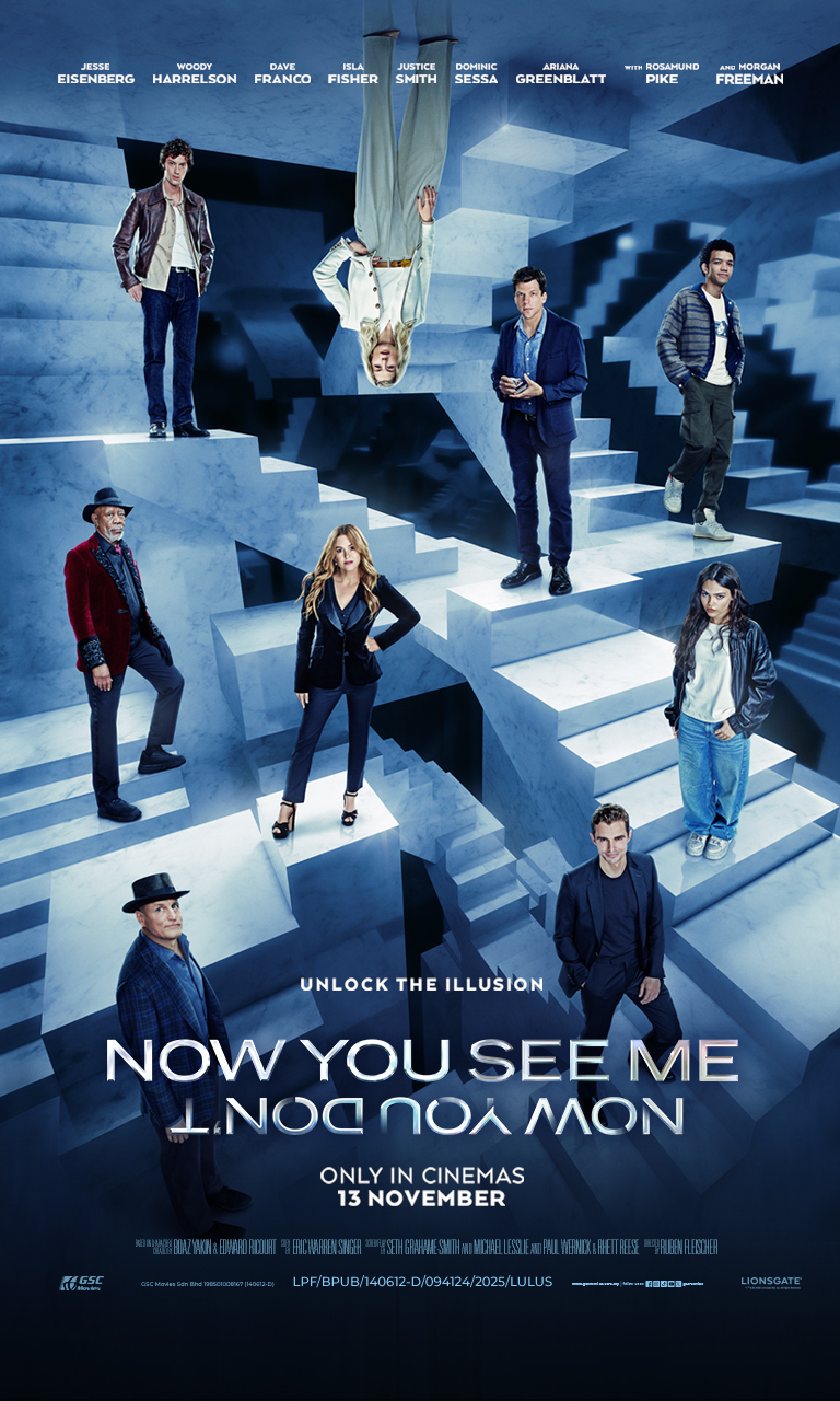 电影将于明天11月13日全马隆重上映,以前所未有、更大更炫的魔术场面震撼本地观众。 自 2013 年首部 NOW YOU SEE ME 起,再到 2016 年的续集 《NOW YOU SEE ME 2》,这个系列一路以高风险劫案、巧妙反转以及近在眼前、却完全看不穿的魔术幻象,成功俘获大马影迷的心。将近十年后,魔术强势回归规模更大、气势更大胆、震撼程度 更令人叹为观止。