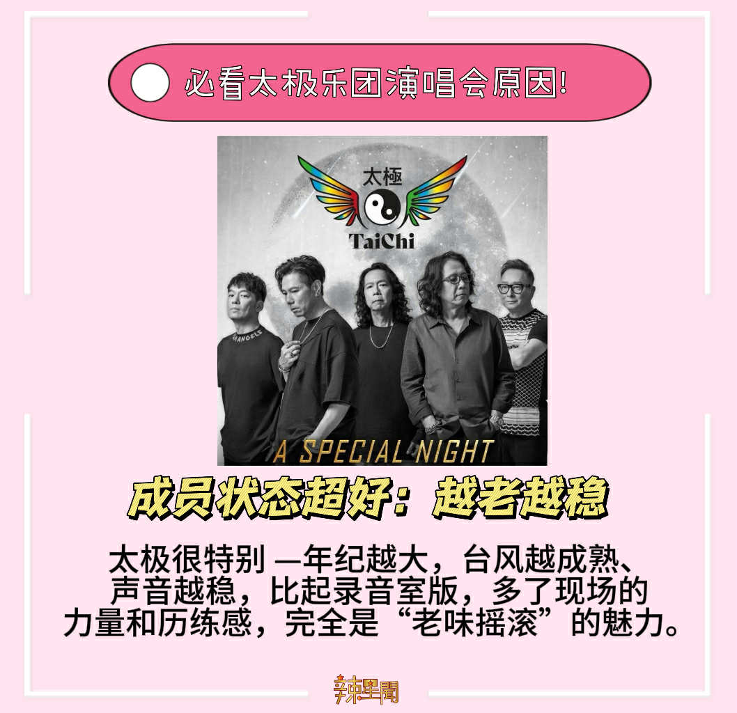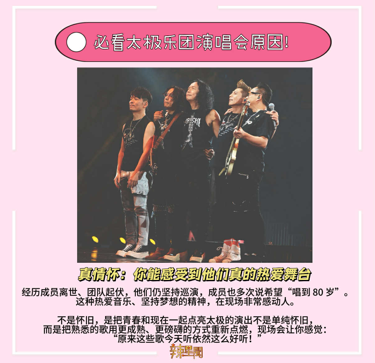 更难得的是太极那种“越老越香”的舞台魅力。经历风雨后的他们,把音乐当成生活的一部分,站在舞台上的从容与真诚,是任何新团都无法复制的。看太极,不是怀旧,而是感受一份历久弥新的热血与温度。