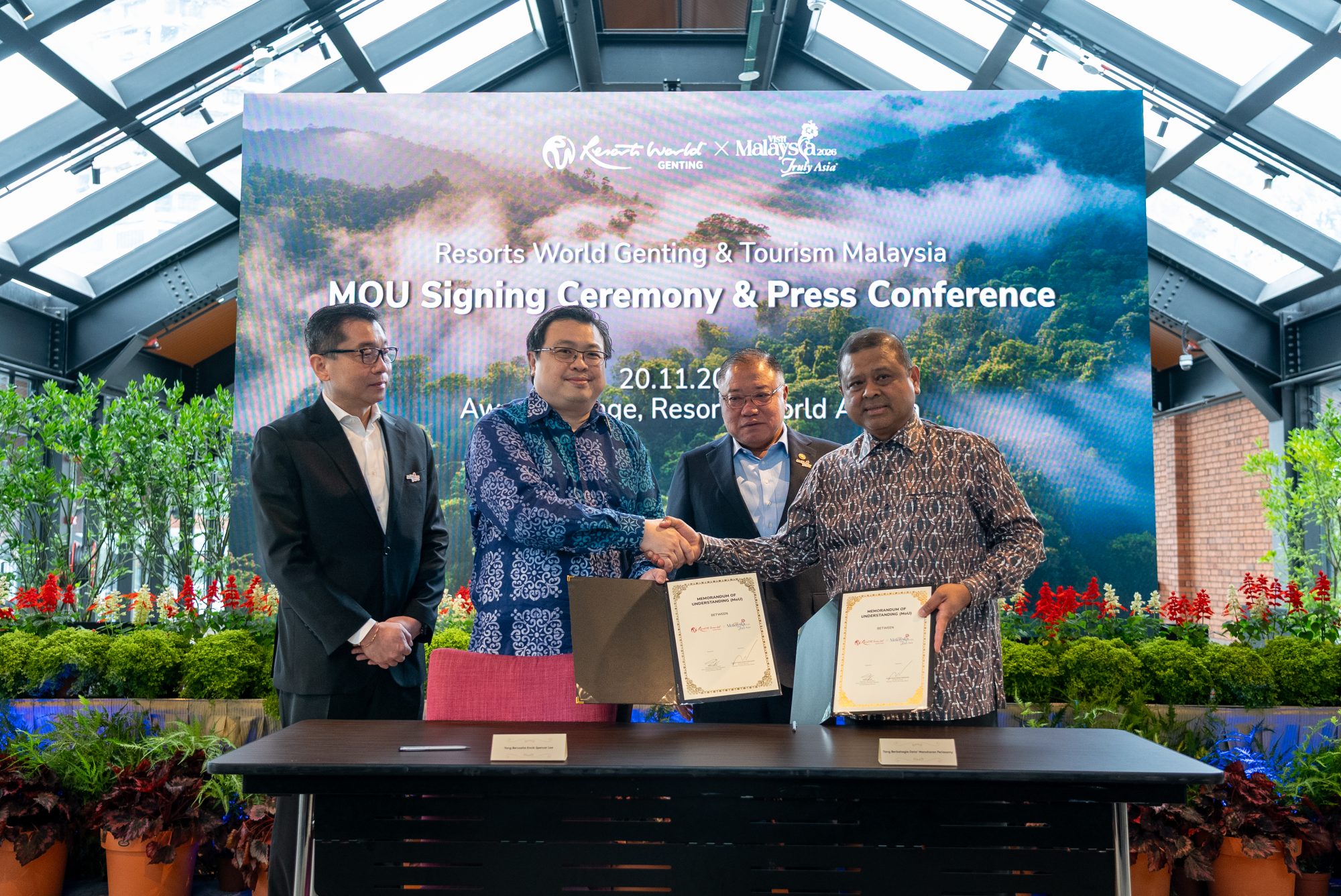 云顶世界日前宣布与马来西亚旅游局达成重要合作,共同推动 2026 马来西亚旅游年相关发展议程。双方在云顶阿娃娜(Resort World Awana)签署了合作备忘录,并由旅游、艺术及文化部部长拿督斯里张庆信见证。