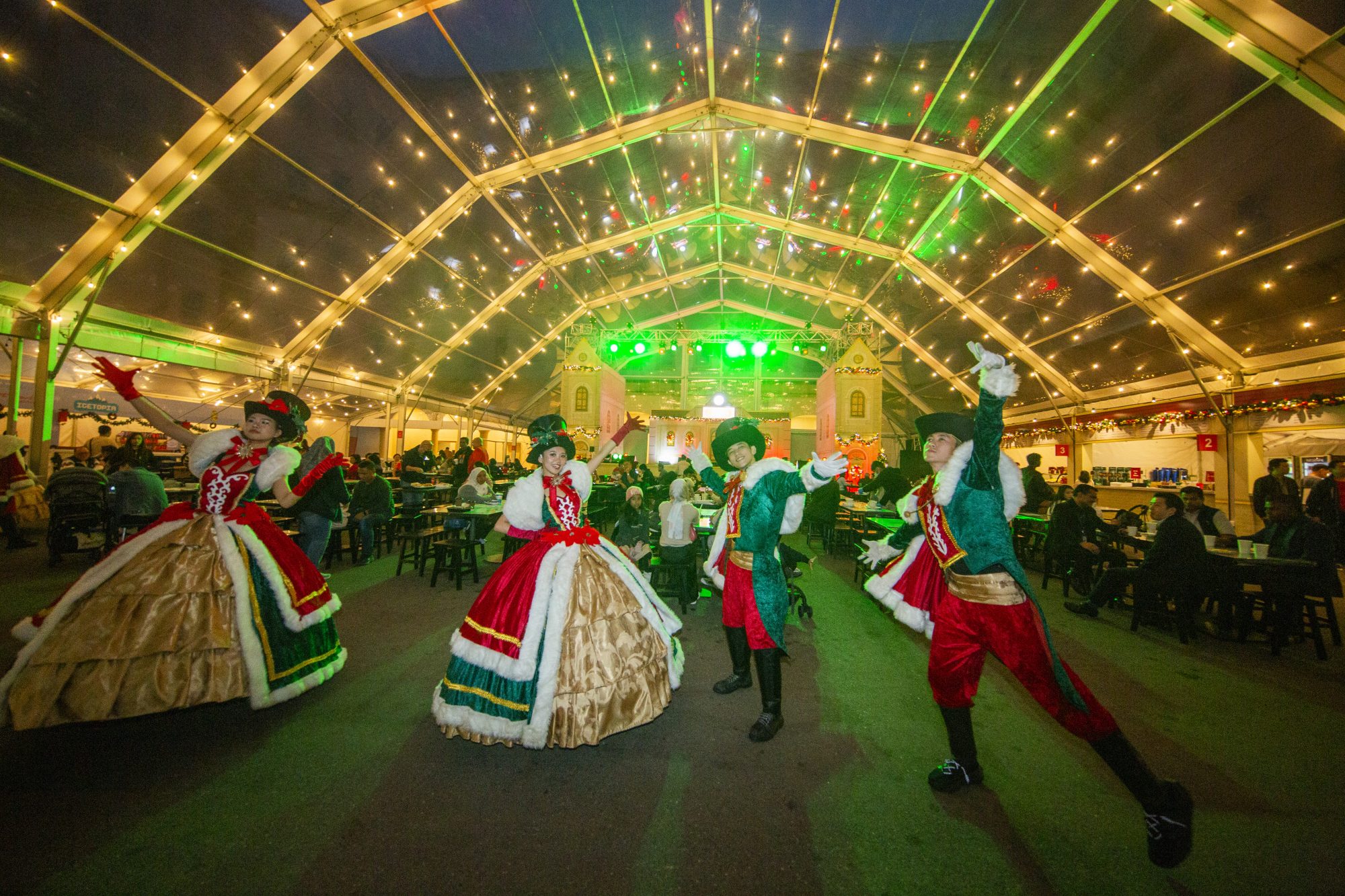 从日前 11 月 21 日起,庆典主场于金华庭热闹展开,每日在特定时段都有欢乐舞蹈演出。12 月19 日后,有《Jolly Jumbos & The Twinkles》、《The Enchanted Noël》、圣诞颂歌团,以及仅在 12 月 24 日、25 日与 31 日上演的腹语表演陆续登场。金花庭将被巨型旋转木马、缤纷礼盒及闪耀圣诞树点亮,打造梦幻节庆景致,为访客留下难忘的节日回忆。