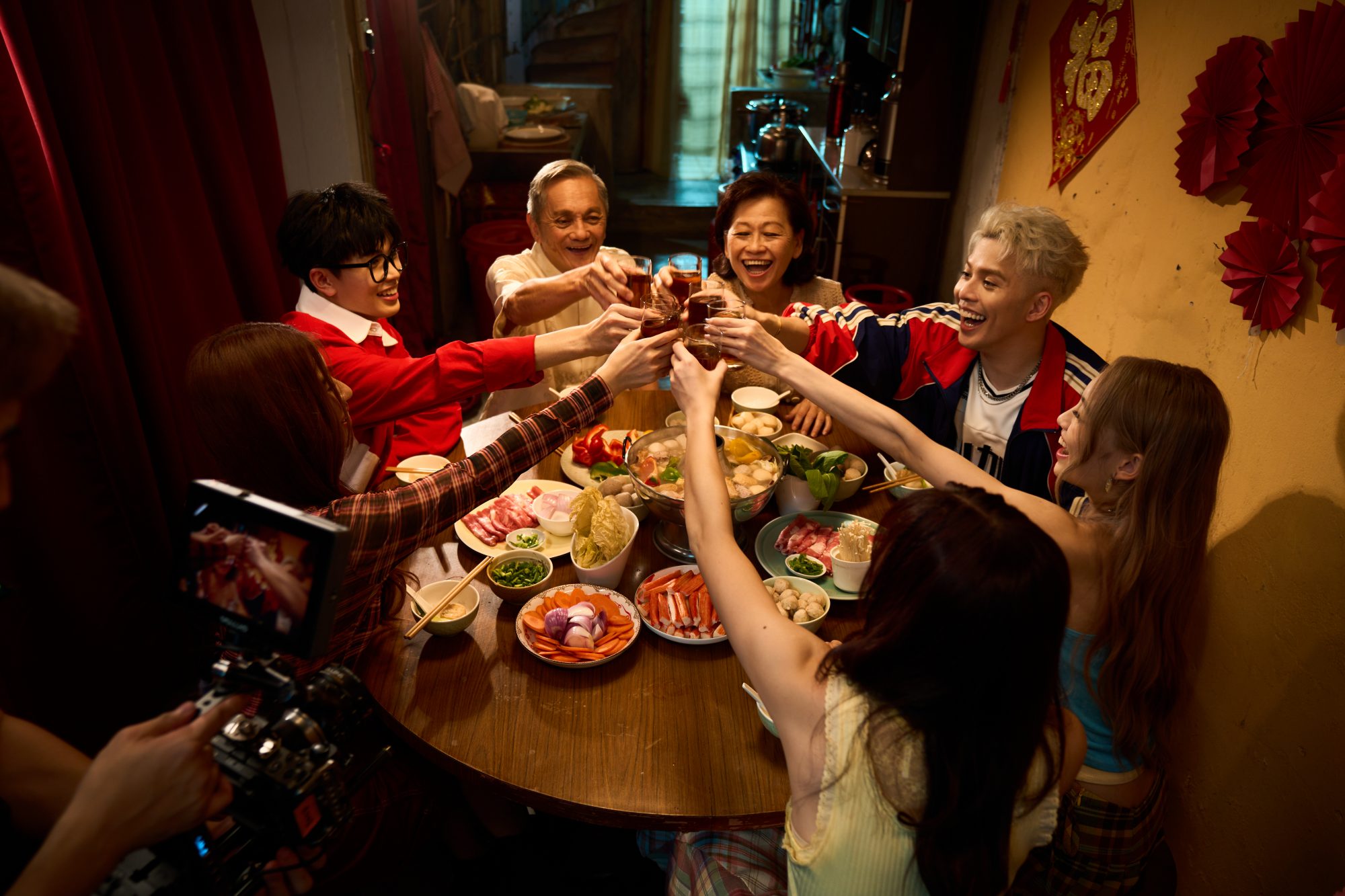 首次参与新年歌录制的 Chris 官杰皓透露,他在 MV 中首次尝试复古造型,尤其是油头造型,连他自己看到都忍不住大笑。 JiaHuii 则分享,拍摄 MV 中最难忘的片段,是大家一起围坐吃团圆饭的场景,让她深刻感受到一家人的温馨与亲密氛围。