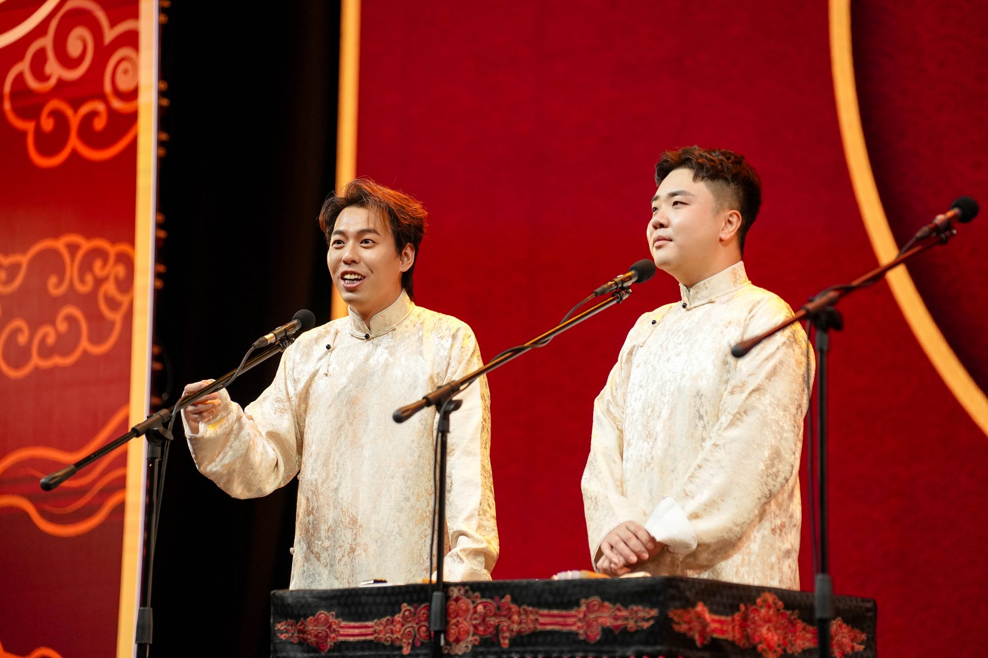 这次德云社的弟子们也在演出助阵。孙子钊和尚筱菊呈现的《鼠来宝》秀出音乐感,将“去到哪儿唱到哪儿”的《成都》歌词从成都、上海改成“吉隆坡”和“马来西亚”,结果因为词数对不上而犯头疼,惹得大家咔咔大笑。
