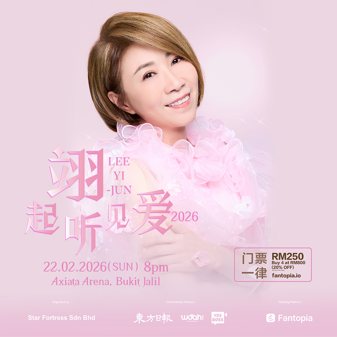 在华语乐坛闪耀了 38 年的“永远的情歌传唱天后”李翊君,终于要将她蕴藏⽆数故事与情感的歌声,⾸次带到吉隆坡的舞台!李翊君《翊起听⻅爱 2026》演唱会将于 2026 年 2 ⽉ 22 ⽇在吉隆坡武吉加⾥尔亚通体育馆(Axiata Arena)深情开唱。