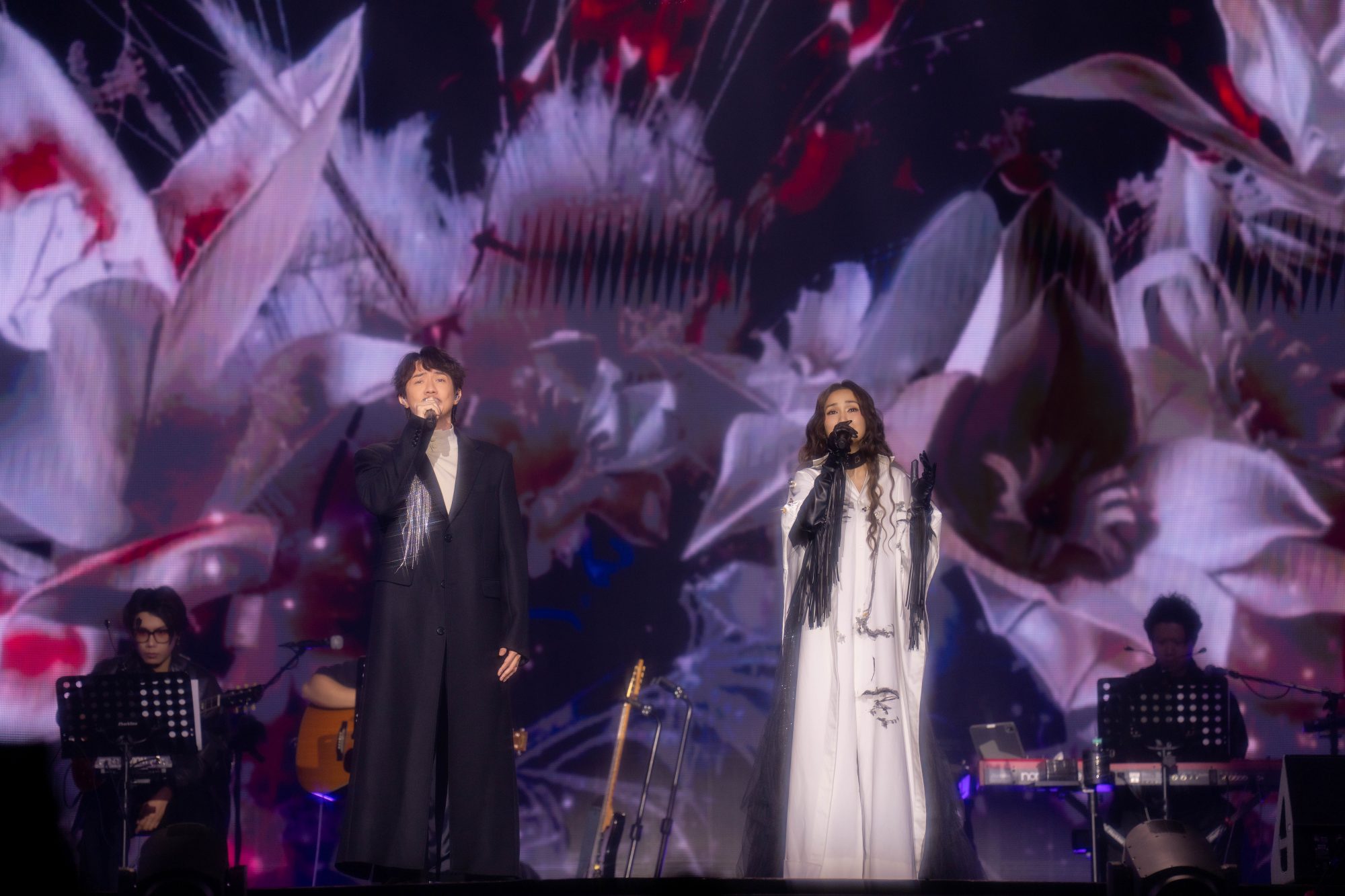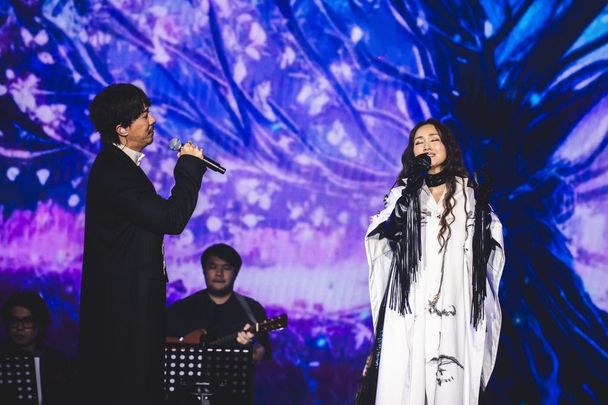 随后,夫妻二人携手献唱《生命之花》,深情对唱中充满默契与温柔,对望、微笑、细腻互动,让全场瞬间融化,甜蜜氛围弥漫整个场馆。两人的自然互动亦多次逗笑观众,令现场气氛既温暖又愉悦。
