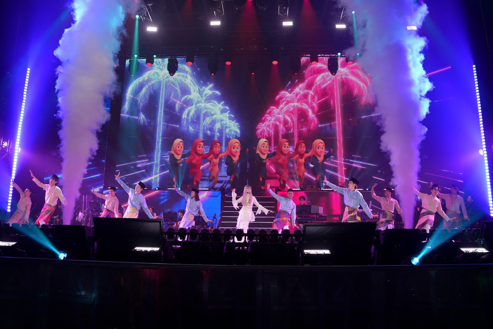 演唱会中段迎来重量级惊喜,马来乐坛资深天后 Fauziah Latif 现身,全场瞬间沸腾。两人首先合唱经典歌曲《Tak Terpisah》,两把实力派嗓音层层交织,情感浓烈而深刻,让观众完全沉浸其中。随后,她们再度携手演绎马来经典《Dia》。
