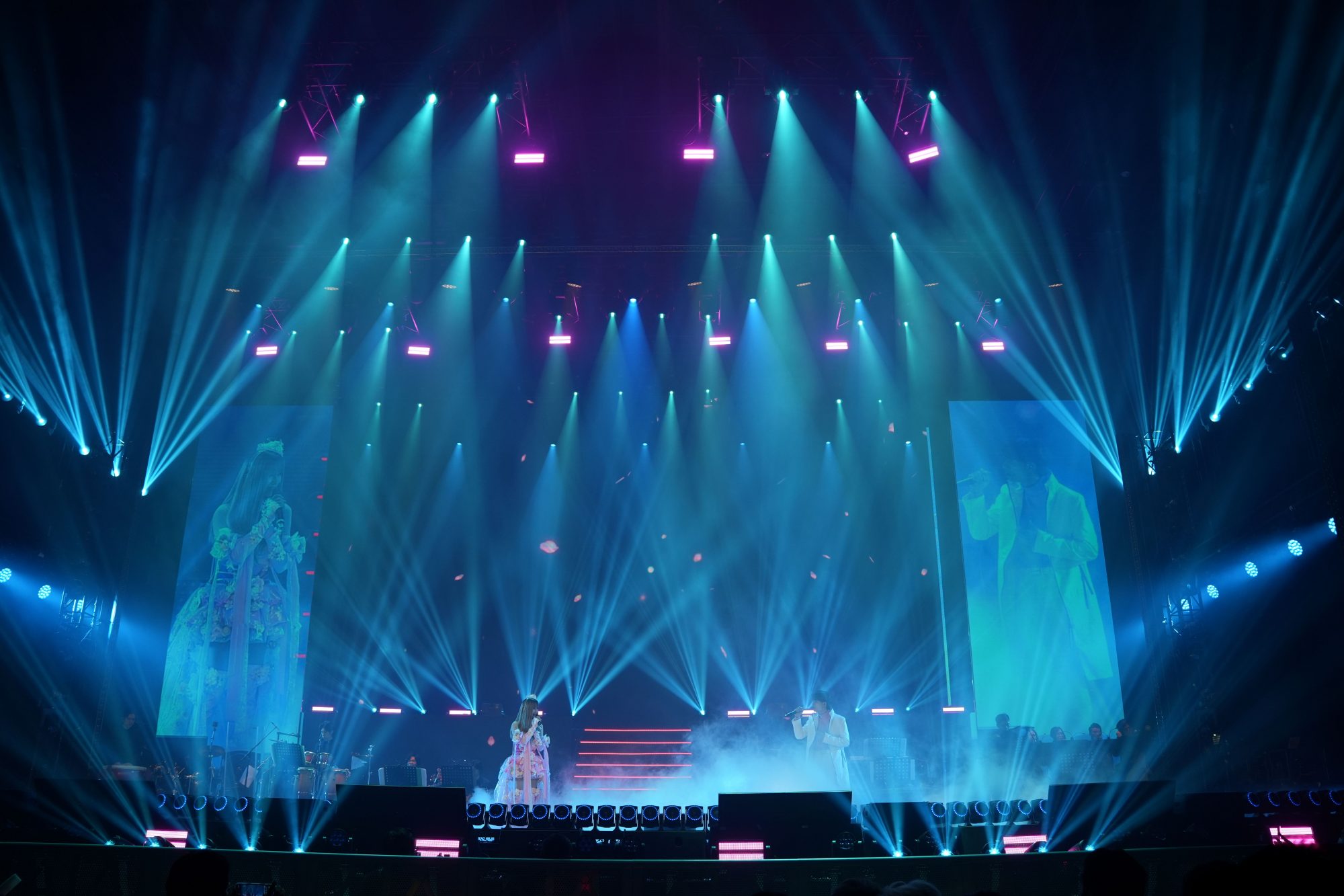 整场演唱会气氛高涨,从开场到尾声几乎没有冷场。熟悉的旋律引发全场大合唱,荧光棒随音乐翻涌成海,尖叫声、掌声此起彼落。每一次高音爆发、每一段情绪转折,都引来观众热烈回应,舞台上下形成强烈共鸣,宛如一场情绪与音乐交融的狂欢。