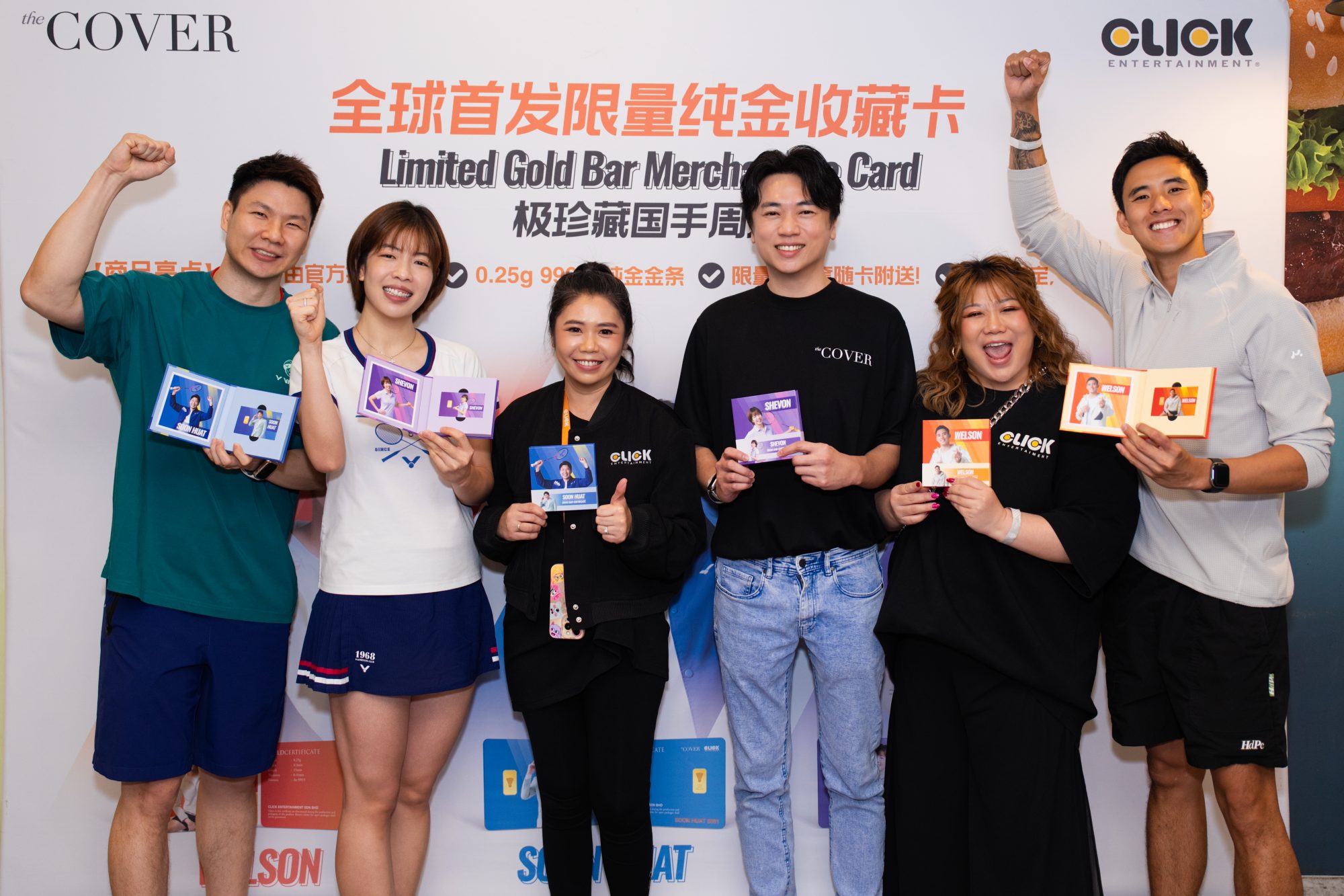 马来西亚三位国手混双“夫妻档”吴埙阀(Goh Soon Huat)与赖洁敏(Shevon Lai)以及“飞鱼王子”沈威胜(Welson Sim),正式宣布由theCOVER Asia联合Click Entertainment官方授权发行推出全球首发限量纯金收藏卡。三位国手希望透过这份别具意义的专属收藏,让运动员与支持者之间的情感与回忆,以“纯金”形式被永久珍藏。