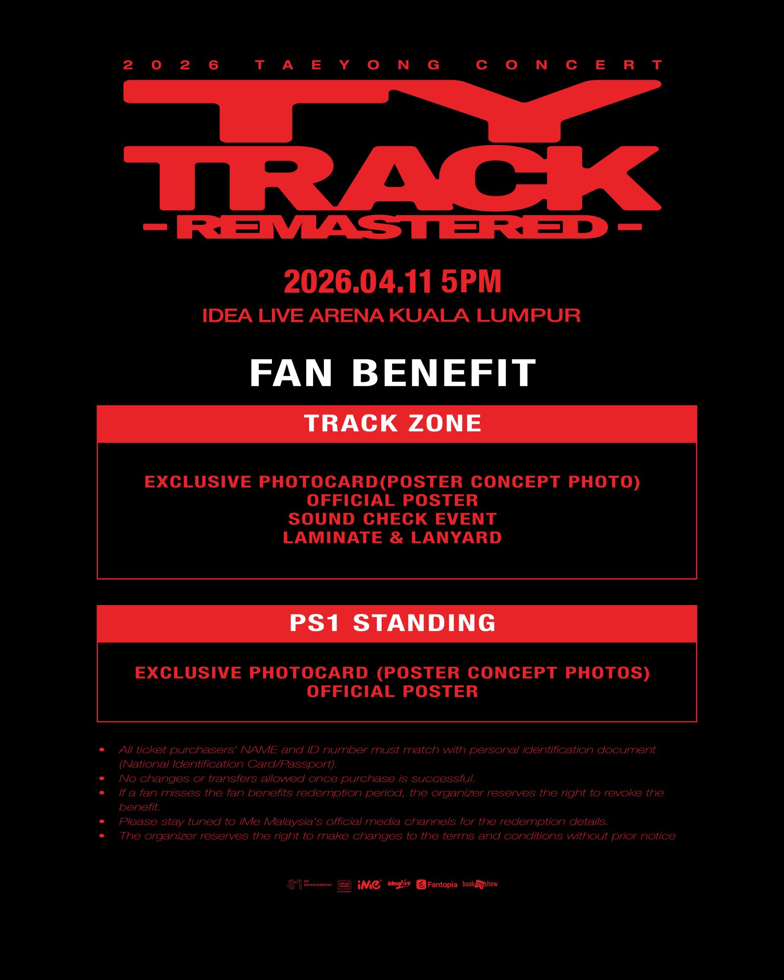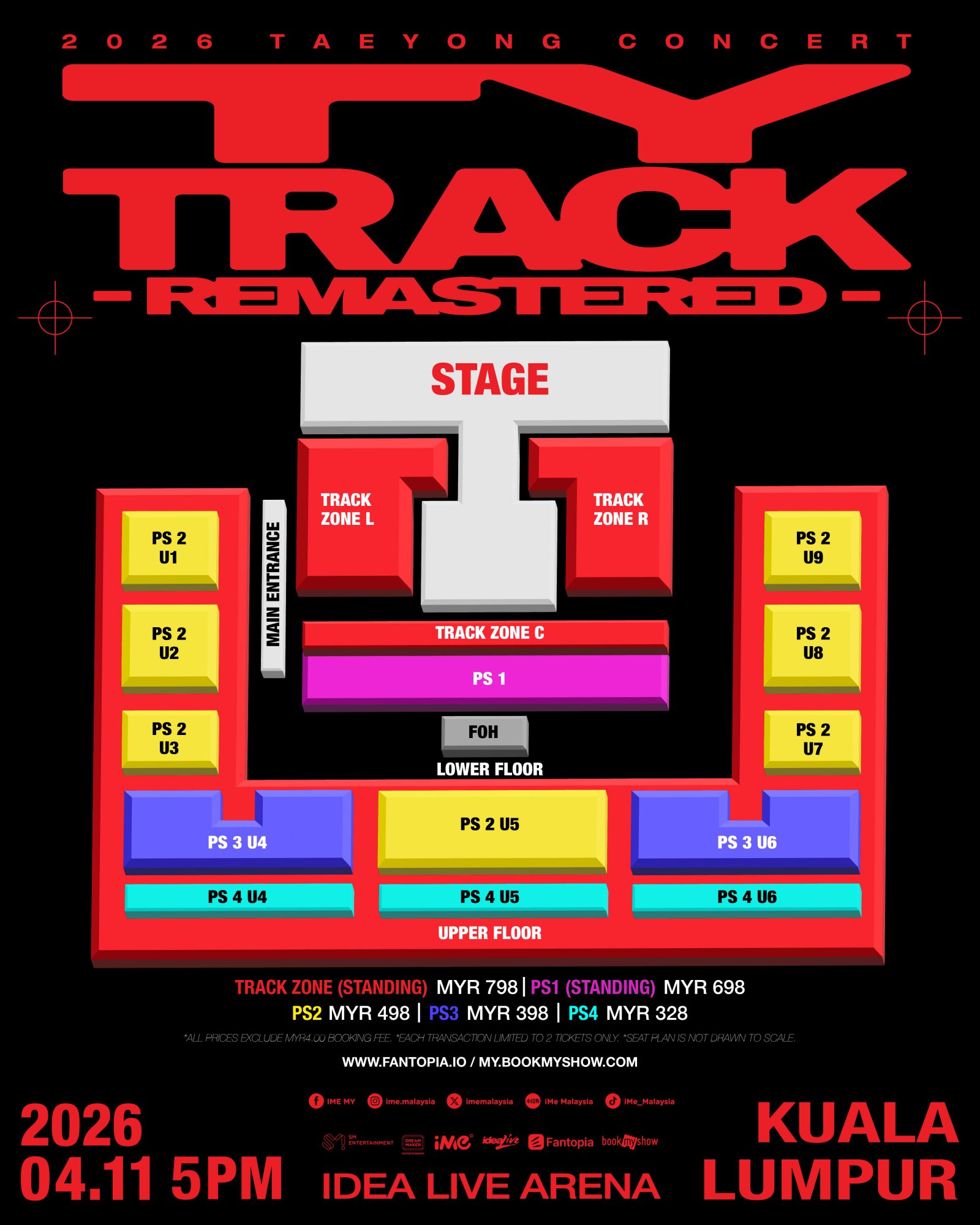 票价:RM798 (TRACK ZONE-STANDING) / RM698 (PS1-STANDING) / RM498 (PS2 -SEATED) / RM398 (PS3-SEATED) / RM328 (PS4-SEATED)