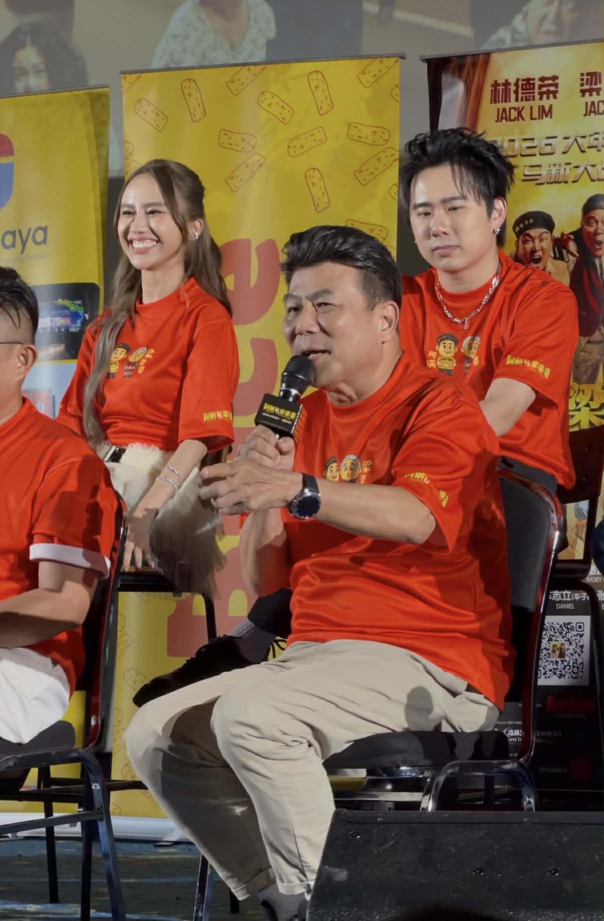 当晚最高潮莫过于林德荣与梁志强分别以电影中的经典人物“阿炳”与“梁婆婆”造型现身!两位“主角”一登场即引爆全场尖叫与闪光灯,气氛瞬间沸腾。熟悉的造型、熟悉的气场,加上两人一出场就互相“斗嘴”互呛,现场仿佛直接变成电影场景,观众与媒体笑声、欢呼声不断,热度爆表。