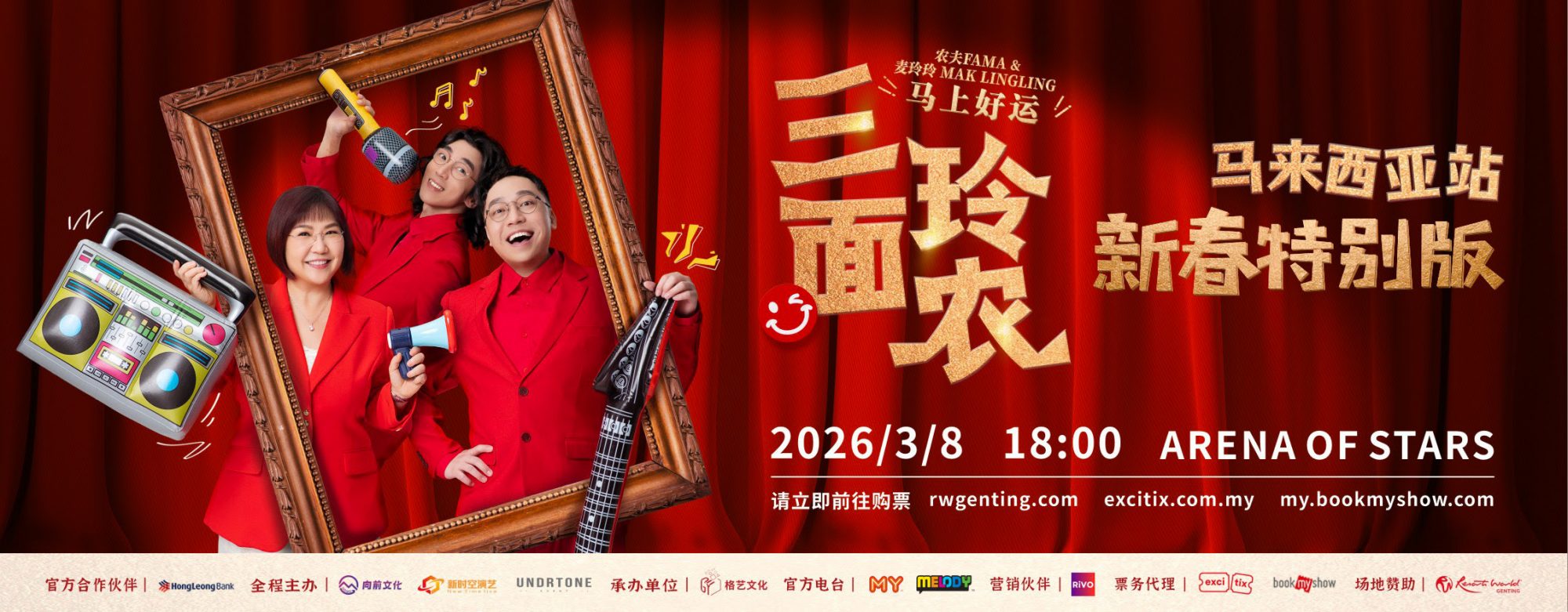 香港“玄学天后”麦玲玲与“嘻哈活宝”农夫FAMA携手打造的跨界演出《三面玲农・马上好运》马来西亚站新春特别版,在大湾区掀起热潮,场场爆满!这支三剑侠黄金组合即将登陆马来西亚,定档3月8日(星期日)三八妇女节,在云顶世界云星剧场重磅登场!