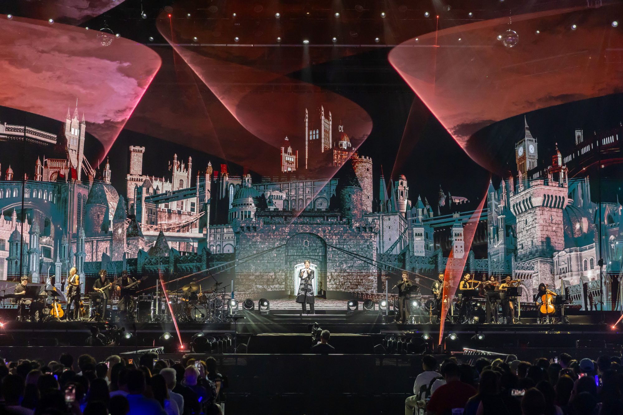 除了情歌连发,舞台设计同样吸睛!Encore环节,他霸气站上全新升级的“未来城”高台再唱《痴心绝对》,李圣杰说:“我为了马来西亚的朋友,特别更新了跟台北小巨蛋不一样的未来城,有没有觉得很厉害?超厉害!”