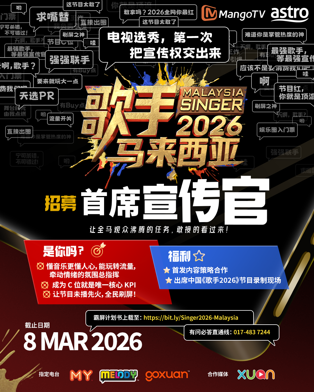 有意竞投首席宣传官者皆可将“霸屏企划书”上载至:https://bit.ly/Singer2026-Malaysia,报名截止日期为3月8日(星期日)。