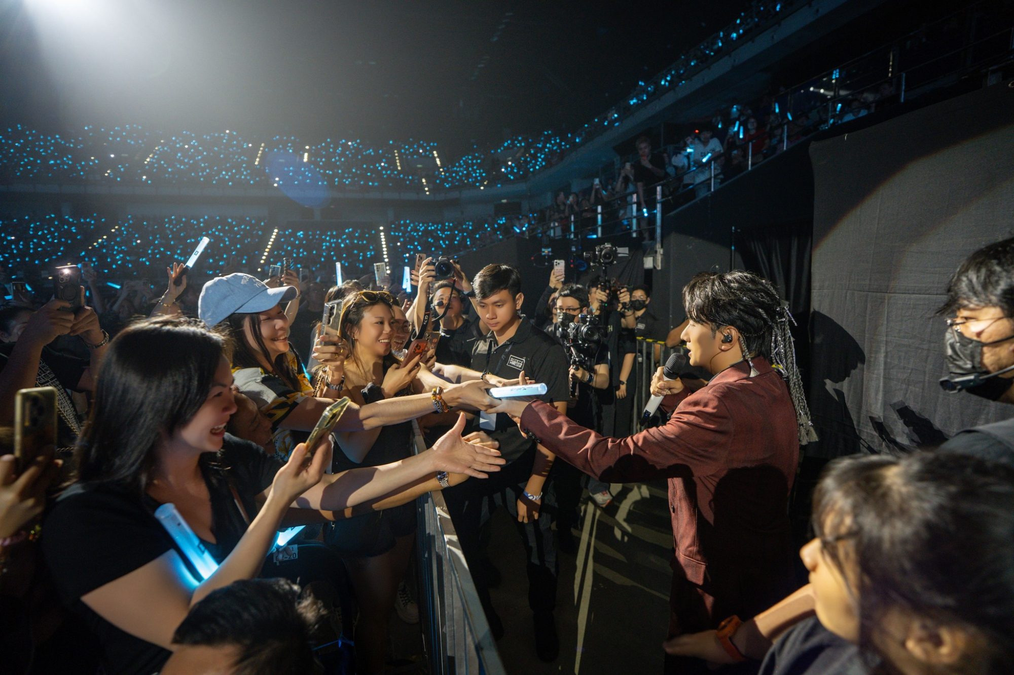 为了回馈歌迷这些年来的支持,海来阿木在演唱《三生三幸》时,更惊喜走下舞台绕场一圈,亲自与台下歌迷击掌、握手,还近距离自拍互动,展现十足亲民魅力。演唱会尾声,他以《十五年以后》为当晚演出画下句点,并在最后跪地感谢全场歌迷一路以来的支持,为这场演出留下感动又难忘的结尾。