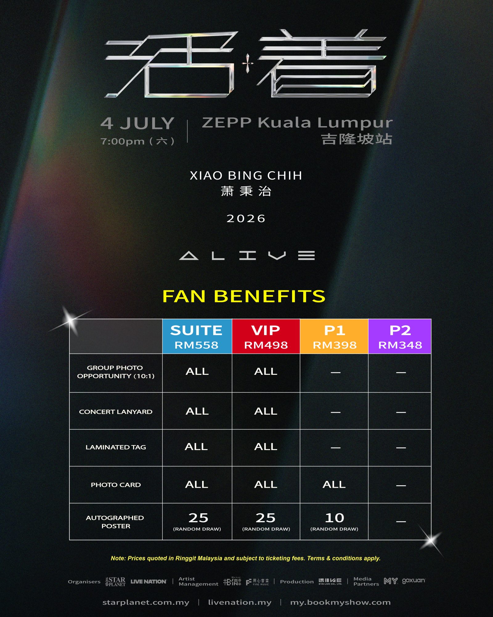 本次吉隆坡站巡演将完整延续《活着 Alive》的核心精神,将破亿神曲与最新力作重新拆解并细腻串联,带领歌迷走进由旋律与情绪层层堆叠而成的感官空间。那些耳熟能详的旋律将在现场乐队的交织下,以全新的生命力重现,配合精准的灯光律动,交织成一场直抵内心的视听盛宴。