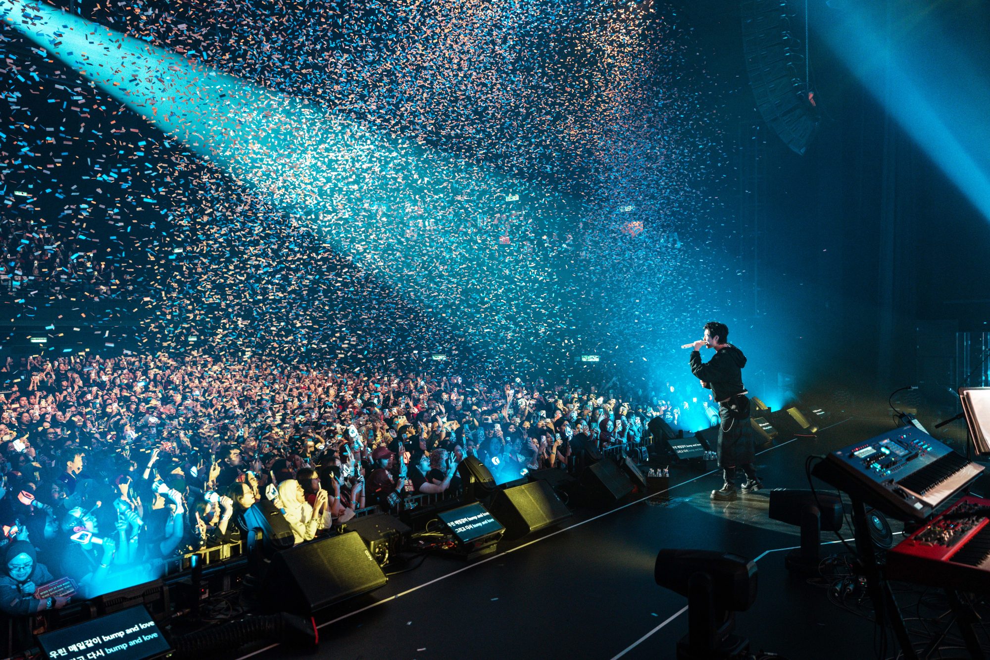 暌违3年未在大马开唱的WOODZ,此次携专属Live Band强势登场,一开嗓便展现了其“All-rounder”的绝对实力。他以一曲气场全开的《Bloodline》震撼亮相,瞬间点燃全场热情;紧接着连唱《Downtown》与《Dirt On My Leather》,强烈的摇滚律动让台下尖叫声此起彼伏。而当逆袭神曲《Drowning》熟悉的前奏响起时,更是直接掀起了当晚的最高潮!