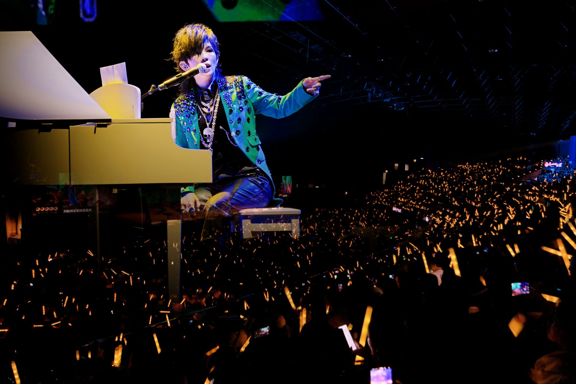 她这次更是惊喜从台下出场,一路和歌迷近距离互动,绕场一圈才走上舞台。台下粉丝从头到尾不断大喊“我爱你”,向她告白。 聊到一贯的帅气路线造型时,她自嘲说自己没办法走“美女路线”,只好坚持帅气风格,虽然也没有特别帅,但大家都看习惯了,如果哪天真的穿裙子,粉丝可能反而不来了,轻松几句话就把现场逗笑。