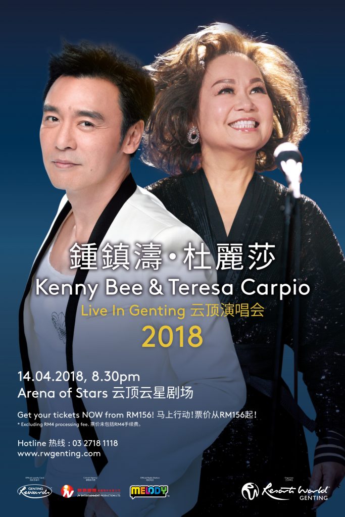 钟镇涛在电访中表示自己非常喜欢大马美食,本想趁这次演唱会后多逗留几天吃遍不同的美食,却遗憾地表示:“因为忙于拍摄电影与电视剧,演唱会后我只能吃个猫山王就回去了”。同是唱英文歌出身,但演唱不同风格歌曲的两人首次联手飙歌,到底会擦出什么样的火花呢?大马歌迷敬请拭目以待! 《钟镇涛&杜丽莎云顶演唱会2018》门票价格分别为726令吉(VIP)、546令吉(PS1)、396令吉(PS2)、266令吉(PS3)和156令吉(PS4);票价未包括4令吉手续费。凡通过云顶积分、云赏积分、信用卡或现金购票的云尊卡会员将获得10% 折扣(适于所有票位)。今天就成为云尊卡会员以享有更多优惠!