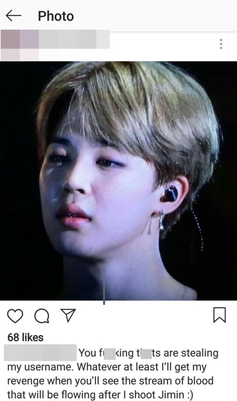 Jimin三度收到死亡威胁。