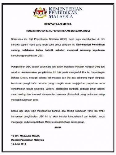 其实官老爷们,你们有没有想过再多的浪潮也抵不过你们大选中横扫千军万马的“大海啸”?希盟不正是靠手中的宣言俘虏人心吗?承认统考“白纸黑字”列在其中,与其他承诺一起经历大选洗礼得到各族人民用手中选票给予认同,这不是多数人民的意愿吗?