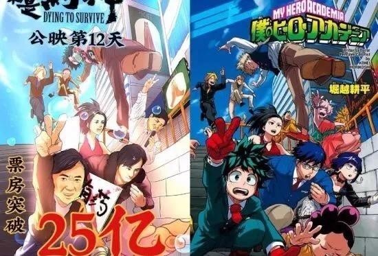 电影《我不是药神》破25亿的海报被指抄袭日漫《我的英雄学院》(右图),海报制作方虽道歉却欠缺诚意。