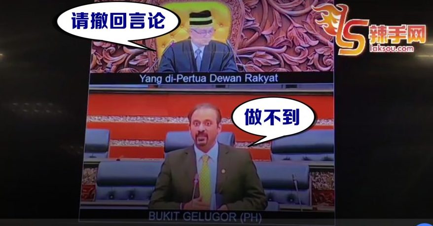 议长在朝野争执后也要求武吉牛汝莪国会议员蓝加巴星撤回,而蓝加巴星指本身无法撤回这个说法。