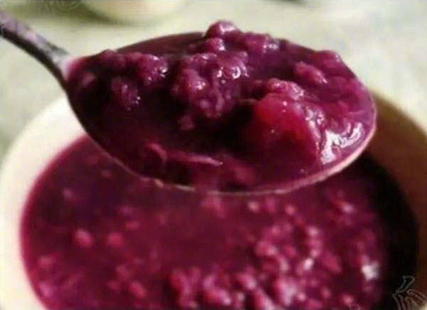 4.紫薯泥放入煮高粱米的锅中,继续煮,大概再煮1个半小时左右