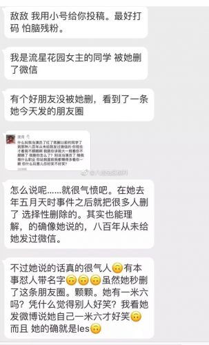 微博爆料帐号“八组兔区爆料”PO出网友截图,该网友自称是“流星花园女主的同学”,但已经沈月删了微信连络方式,不过有另一位没被删的朋友截了疑似沈月在朋友圈的发文。