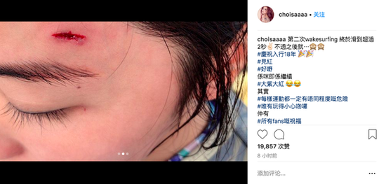 阿sa冲浪不慎跌伤额头 伤口2厘米! 2 Aug , 2018 | 娱乐前线 阿sa在社交网站上晒出滑水视频和头部受伤照片,引得粉丝纷纷直呼好心疼。 阿sa自己也调侃:“庆祝入行18年见红!”言辞间尽显其好心态。阿sa晒出额头受伤照片,伤口有近2厘米长,其表情十分痛苦。 她同时配文道:“第二次冲浪,终于坚持超过2秒,不过之后就……庆祝入行18年首次见红。其实每项运动都有不同程度的危险性,只能玩的时候小心一点,还有谢谢所有粉丝的祝福,谢谢你们。”正能量满满。 分享