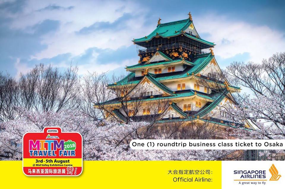 超狂热的三天旅游展又回来啦!除了有超值旅游配套、住宿、机票等提供,现场还会有总值RM250,000的奖品等你来赢取!同时,每人都有机会“免费”飞大阪游玩喔!是不是棒棒的阿!