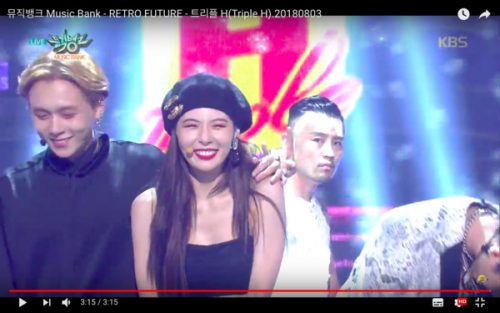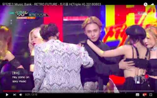 “Triple H”3日出席音乐节目《Music Bank》,也是泫雅、E’dawn认爱后首度现身。泫雅穿着火辣的小可爱、长裤,与两位团员热舞,没想到,她正要转身时,竟不小心踩到裤脚,整个人往男友身上扑,不过,E’dawn眼明手快,立刻把她扶起来,但她当着所有人面前惨跌,舞台ending时,忍不住害羞遮住脸,男友则是搂着她的肩膀给安慰,两人首度认爱也是首次放闪。