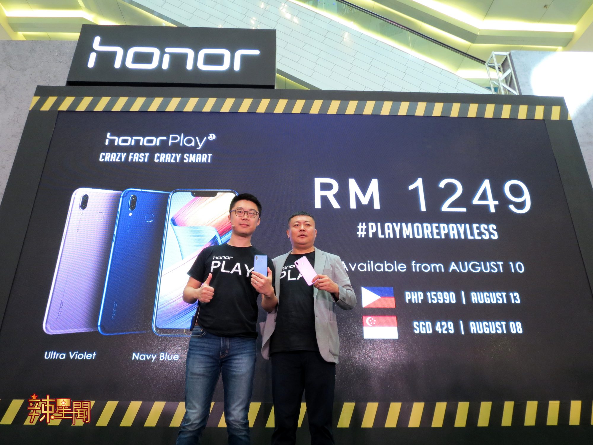 Honor Play提供的颜色共有2种,包括紫色、蓝色,售价为RM1249。该手机将于8月10日正式发售。