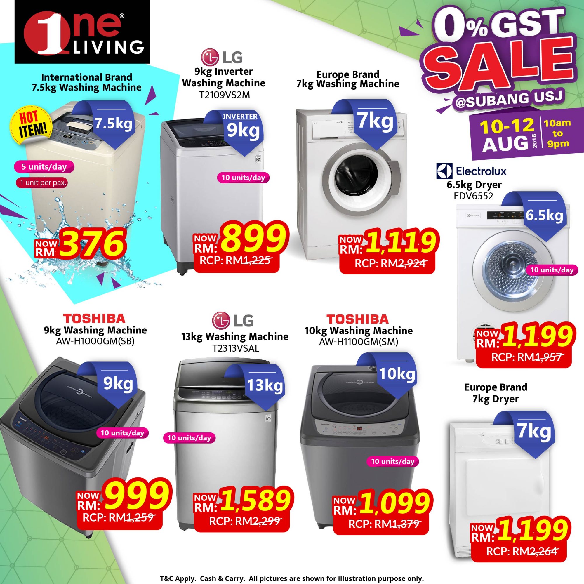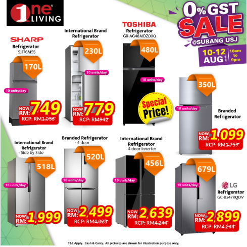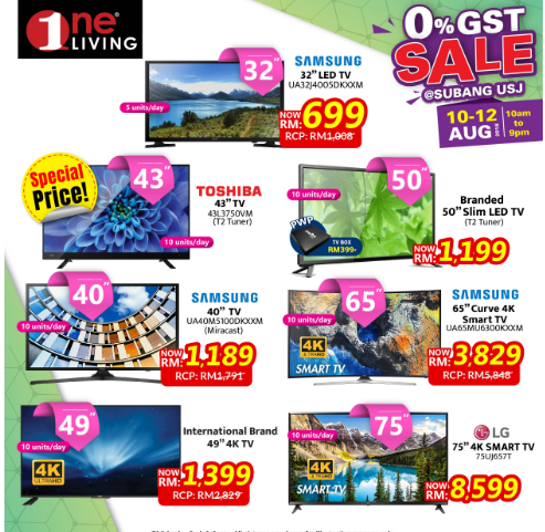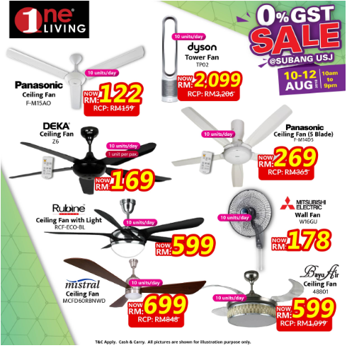 这项促销活动从8月10日至8月12日,一连三天在One Living Subang Jaya举办!现场提供的商品不止款式多、选择多,最重要的还是便宜阿!如LED电视机最低价只需RM399、洗衣机RM376,还有风扇也只是RM122而已!真的抵到烂~