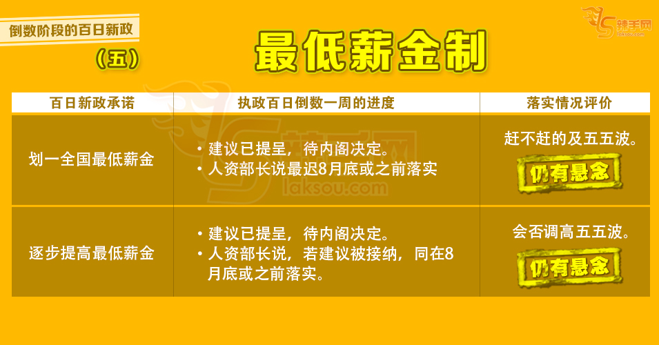 5)划一全国最低薪金,接着展开调高最低薪金的进程;