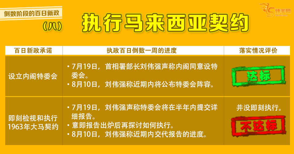 8)设立内阁特别委员会即刻检视和执行《1963年马来西亚契约》;