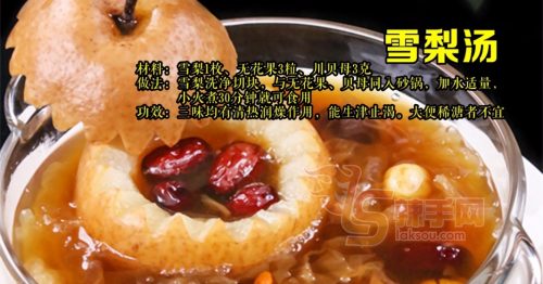 做法:雪梨洗净切块,与无花果、贝母同入砂锅,加水适量,小火煮30分钟就可食用