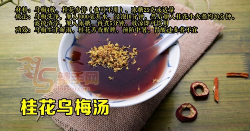 功效:乌梅生津解渴,桂花芳香醒脾,预防中暑。胃酸过多者不宜
