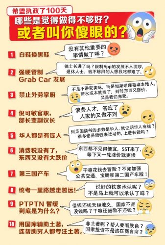 新政府新政策100天 最赞及最瞎榜 16 Aug , 2018 | 民生关注 希望联盟政府再过几天便正式执政100天。政府在过去100日内做了许许多多的政策及决定,人民的反应有赞也有贬。 《辣手网》就通过各个管道整理出网民最赞的及最瞎的政策。 分享