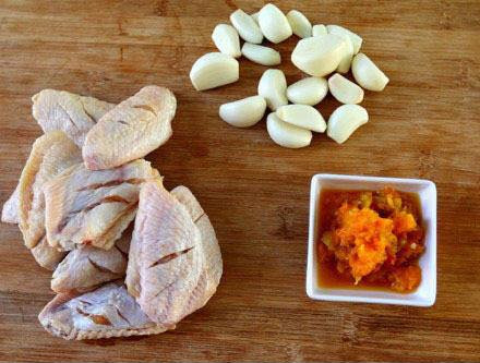 材料:鸡翅10个、大蒜数粒、黄椒酱适量
