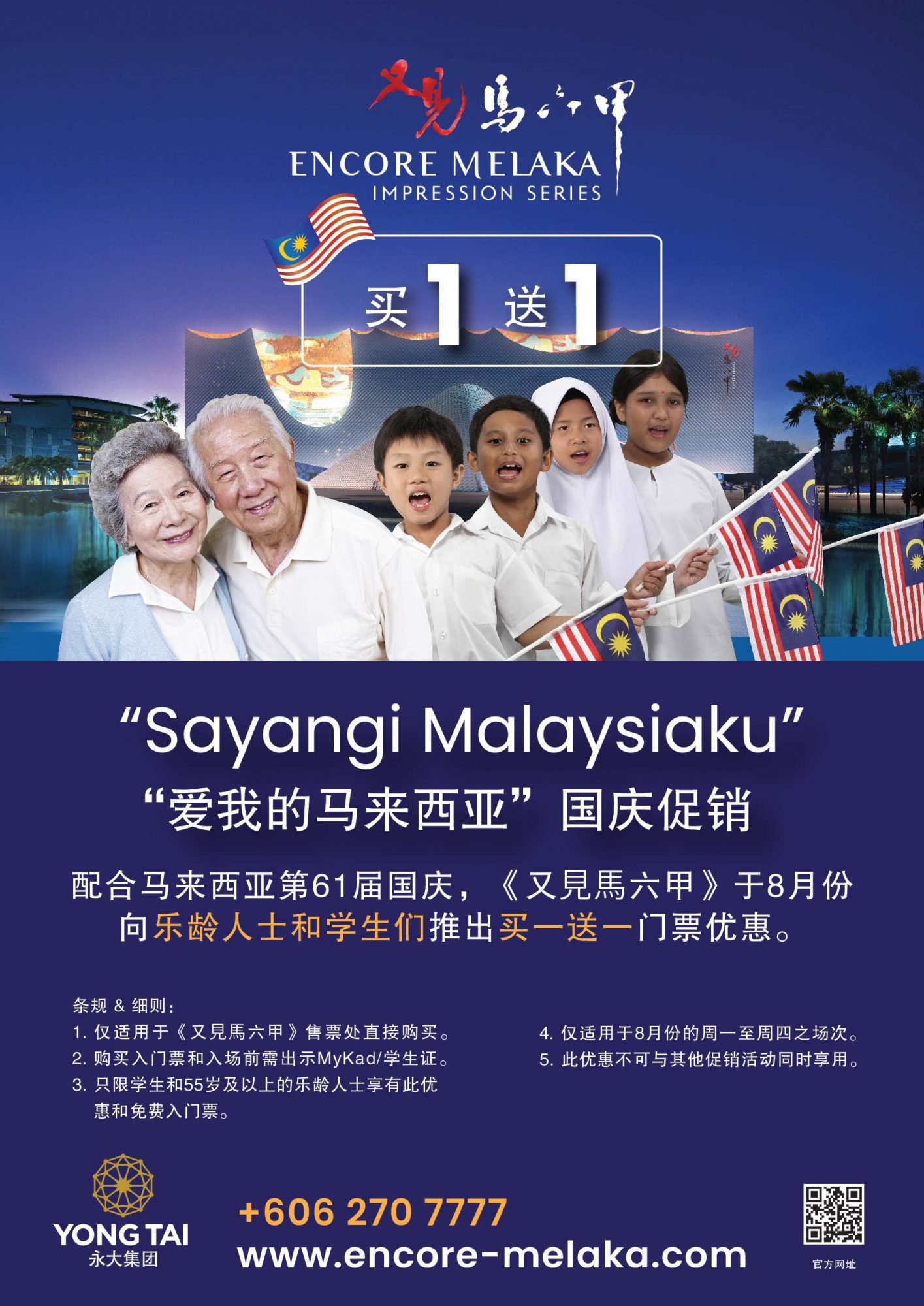 配合第61届国庆日的到来, 《又见马六甲》特别在八月份推出买一送一促销活动,与全国人民一同庆祝国庆。