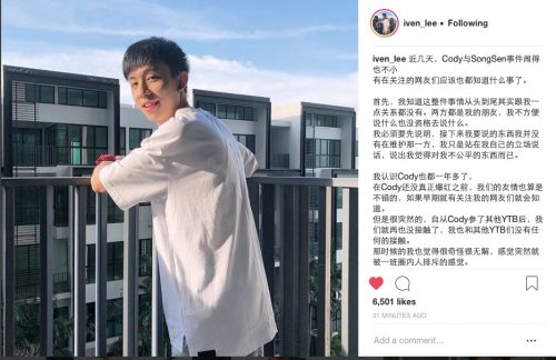 阿源对于Cody这样的行为大感不舒服,因而在个人面子书写了一篇长文,把Cody利用自己的经过曝出来,虽然这样会对Cody造成影响,但他依然写道:“人始终还是会为自己觉得不公平的事情发声的。”